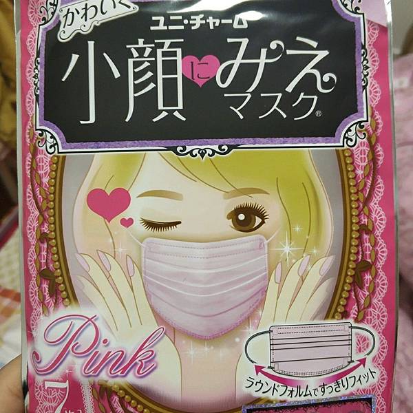 右下角有Unicharm印刷字樣的是口罩外層觸感很柔軟,非常舒服,不勒耳朵而且真的可以修飾臉型!大圓臉日常開心^_^